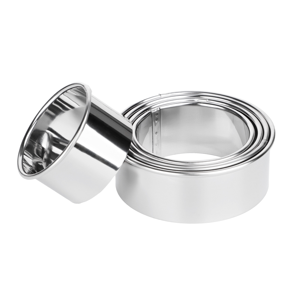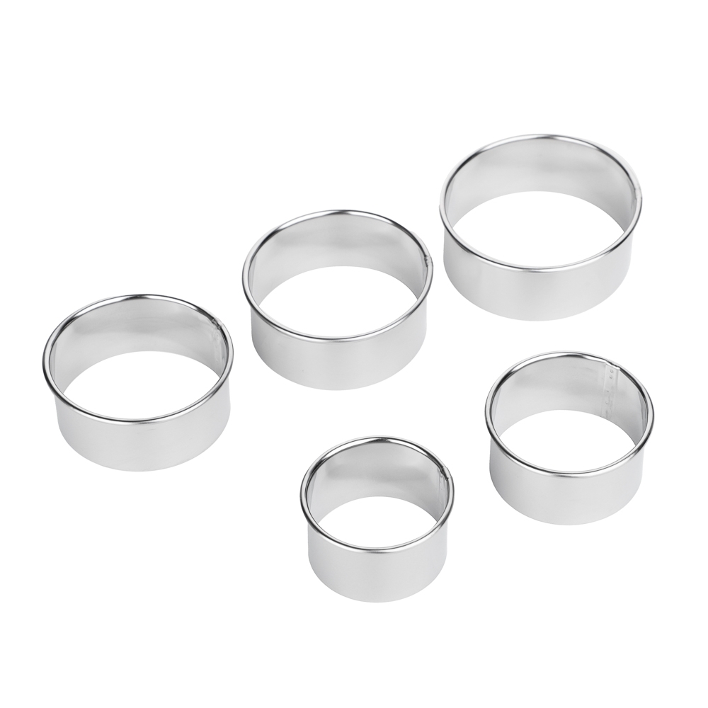 Набор форм для печенья/салатов/десертов SATOSHI включает 5 круглых форм разных размеров: 5,2-6-6,8-7,6-8,5х3 см. Используются для красивой подачи салатов, десертов, пюре и других блюд на праздничный стол. А также могут использоваться в качестве формочек для выпечки печенья и кексов. Формы выполнены из нержавеющей стали с антиналипающим покрытием. Легко моются, не подвержены коррозии, практичные и долговечные.
