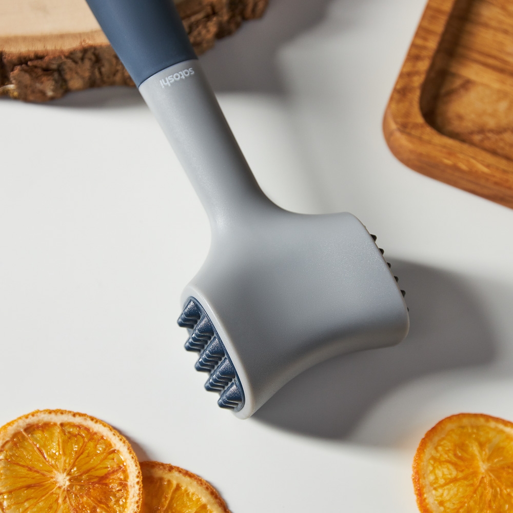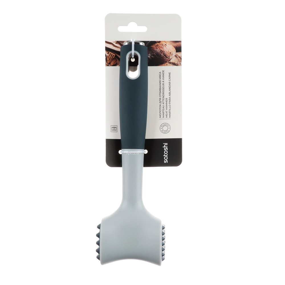 Кухонный молоток SATOSHI «Ривьера» - удобный кухонный аксессуар, верный помощник хозяйки на кухне, позволяет без особых усилий приготовить полуфабрикат для отбивных или бифштекса. Небольшая длина изделия облегчает хранение, а при необходимости инструмент можно подвесить благодаря отверстию в ручке. Вес молотка идеально сбалансирован, благодаря чему рука не устает во время его использования.