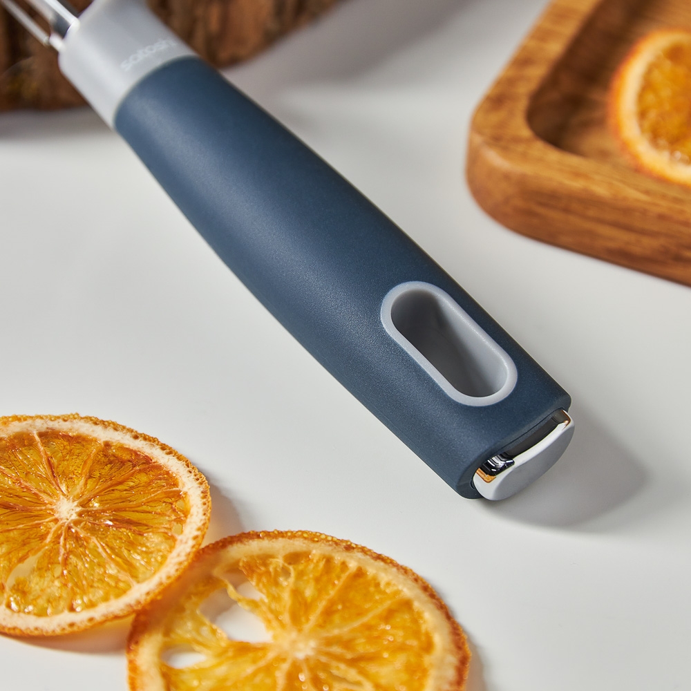 Овощечистка SATOSHI «Ривьера» вертикальная — лучший помощник для очистки продолговатых овощей от кожуры. С таким аксессуаром вам не составит труда очистить морковь, огурцы, кабачки и баклажаны. Инструмент срезает тонкий слой кожуры, оставляя в овощах максимум витаминов и полезных вещей. Материал не боится ржавчины, не окисляется и надолго сохраняет остроту.