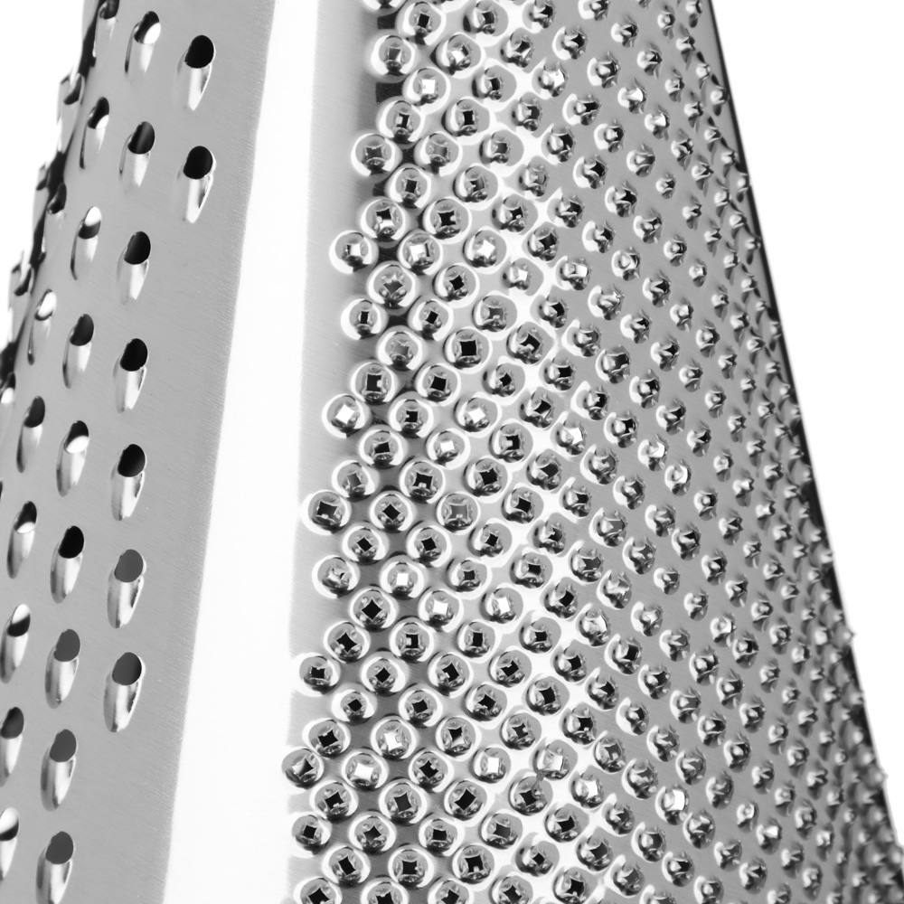 Тёрка – необходимый кухонный помощник в каждом доме! Это многофункциональный и долговечный инструмент. Многие хозяйки даже не догадываются о том, сколько всего можно приготовить, если использовать все рабочие поверхности тёрки. Крупные отверстия предназначены для овощей, сыра, яиц, шоколада и масла. По секрету, кондитеры, чтобы ускорить процесс приготовления, натирают масло на крупной тёрке. Мелкие отверстия предназначены для украшения стружкой или для измельченной нарезки. С колючей стороной тёрки нужно быть осторожным, чтобы не нанести травму. Она предназначения для измельчения чеснока, острого перца, орехов, сухарей, имбиря. А также поможет снять цедру с цитрусовых. Продолговатые отверстия предназначены для нарезки овощных и фруктовых слайсов. С помощью неё можно приготовить рататуй, домашние картофельные чипсы, луковые кольца, запеканку из кабачков и многое другое.