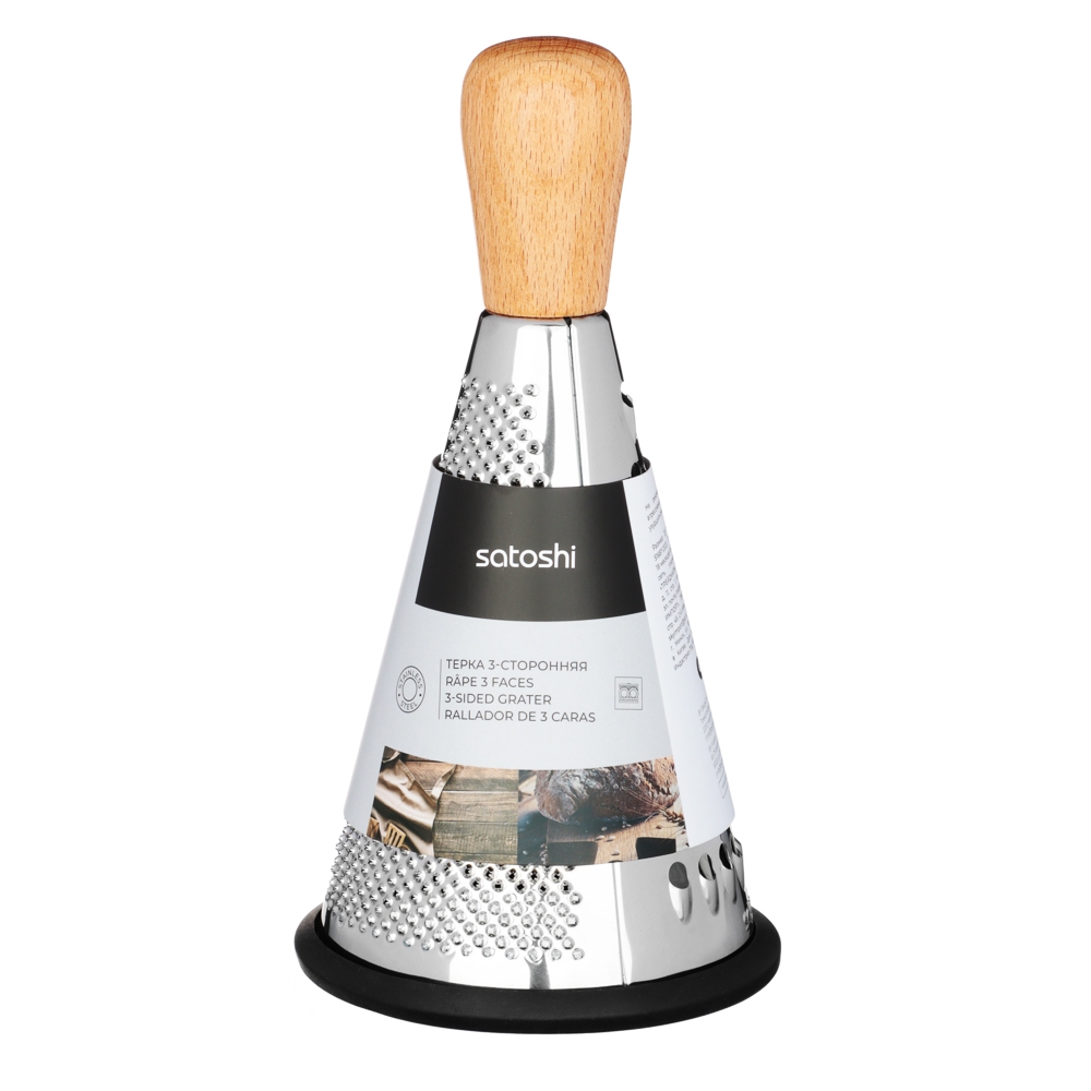 SATOSHI Терка 3-х сторонняя 20см, нерж.сталь, деревянная ручка