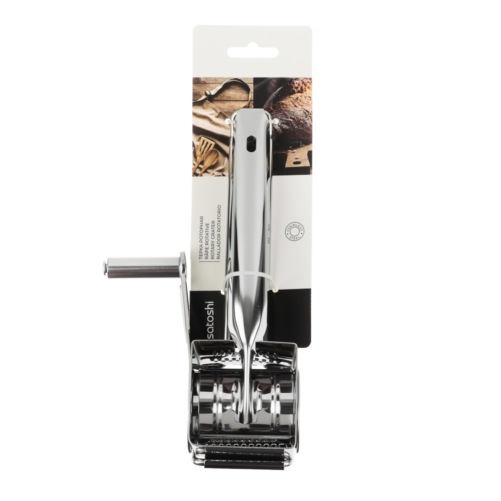 Уникальная роторная тёрка SATOSHI идеально подходит для натирания твёрдых сыров. Классный дизайн, гладкий внешний вид и удобный вращающийся механизм. Подходит как для правшей, так и для левшей. Ее небольшой размер и удобная рукоятка идеально подходит для добавления последних штрихов уже готовому блюду. Никогда измельчение сыра не было таким легким и удобным. Может быть оригинальным подарком.