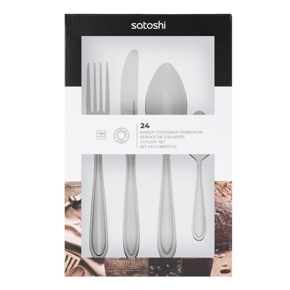 Изысканный набор столовых приборов "Вилларо" SATOSHI из 24 предметов станет идеальным дополнением к вашему праздничному или повседневному столу. Изготовленный из высококачественной нержавеющей стали, он отличается стильным и современным дизайном. В набор входят 6 вилок, 6 столовых ножей, 6 чайных ложек и 6 столовых ложек – все необходимые приборы для комфортной сервировки стола на 6 персон. Благодаря своей универсальности, этот набор станет отличным подарком для любого случая.