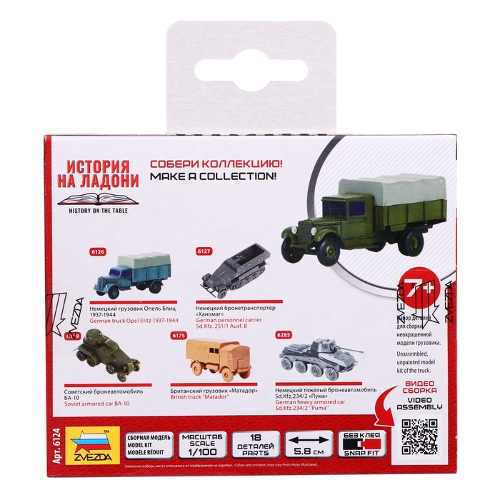 Сборная модель-автомобиль «Советский грузовик ЗИС-5», Звезда, 1:100, (6124)