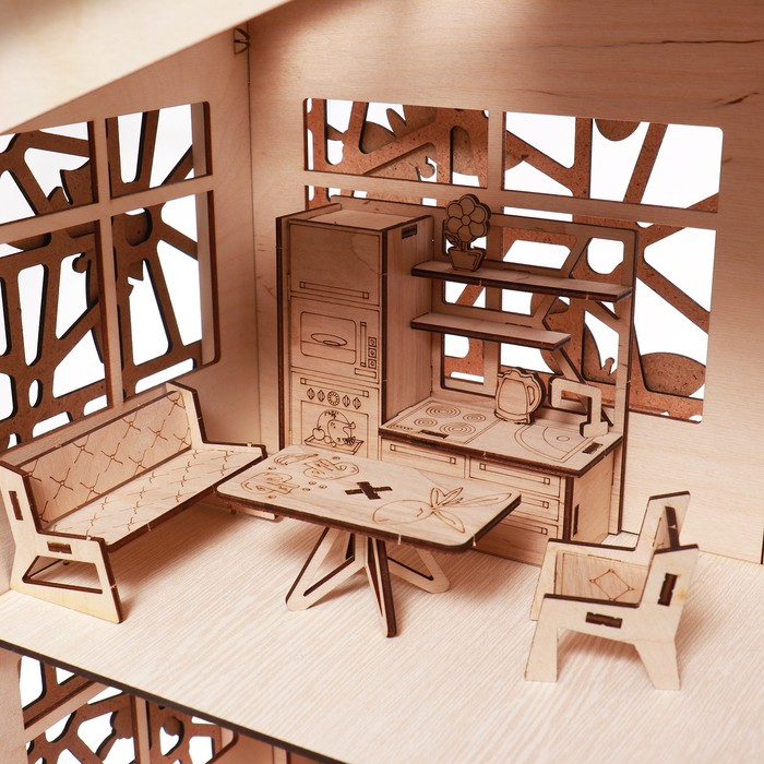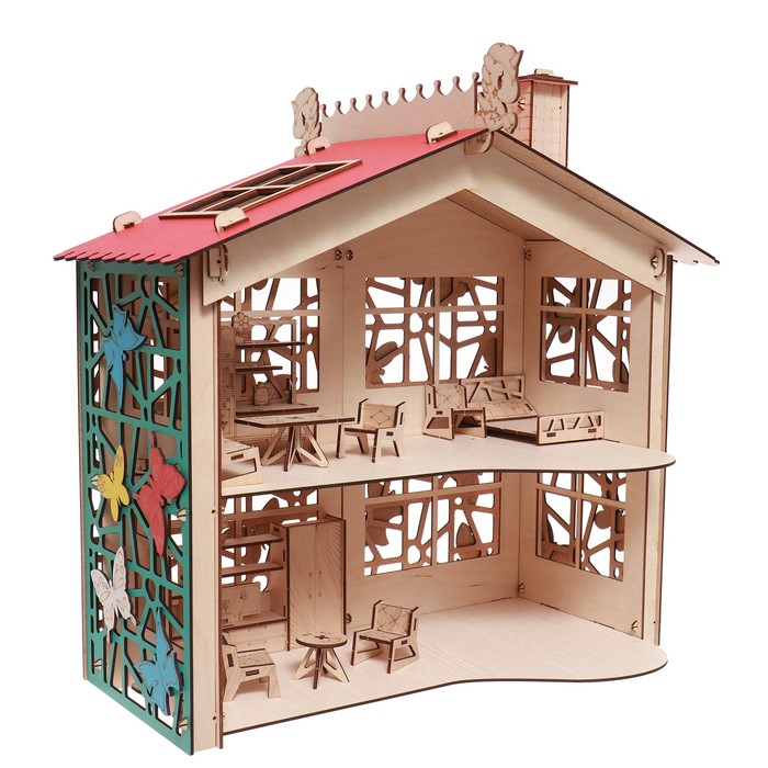 Конструктор «Большой кукольный дом», без мебели и текстиля, фанера — 3 мм, этаж: 33 см