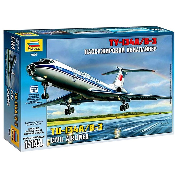 Сборная модель-самолёт «Пассажирский авиалайнер Ту-134 А/Б-3» Звезда, 1/144, (7007)
