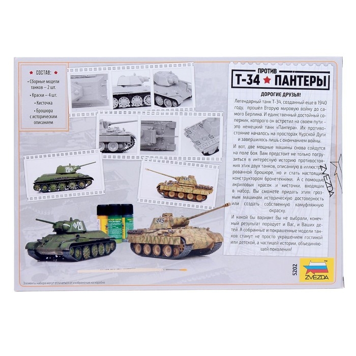 Сборная модель-танк «Великие противостояния: Т-34/76 против Пантеры» Звезда, 1/72, (5202)