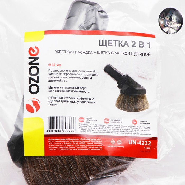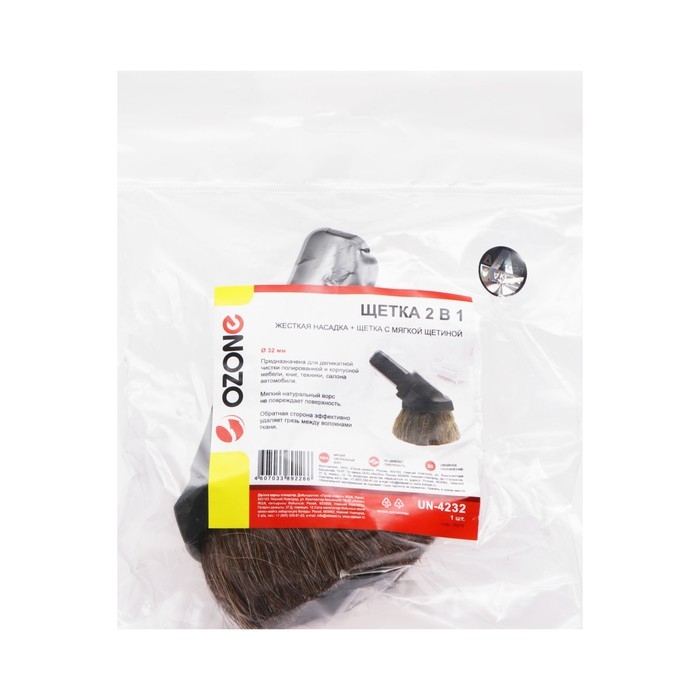 Щетка для пылесоса "2 в 1" UN-4232 Ozone - это универсальная насадка, которая подходит для уборки различных типов поверхностей. Она подключается к трубке пылесоса с диаметром 32 мм.