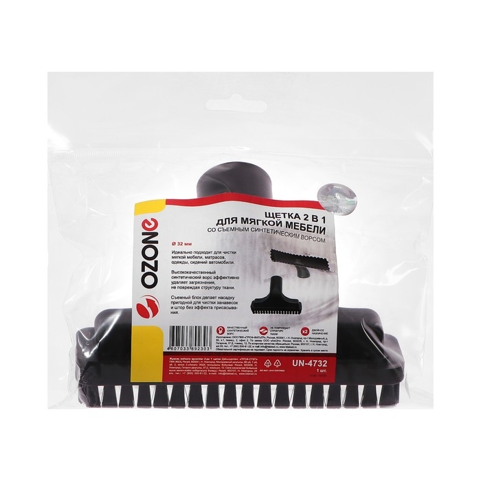 Щетка для пылесоса "2 в 1" UN-4732 Ozone - это специальная насадка, предназначенная для уборки мягкой мебели. Она оснащена съемным синтетическим ворсом, который эффективно удаляет пыль и грязь с поверхности мебели.