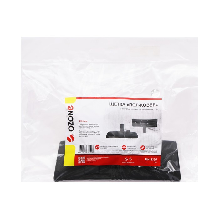 Щетка для пылесоса "Пол-ковер" Ozone с двусторонним переключателем - это универсальный аксессуар, который позволяет эффективно очищать как твердые, так и ковровые покрытия. Она имеет ширину 260 мм, что обеспечивает большую площадь уборки за один проход.