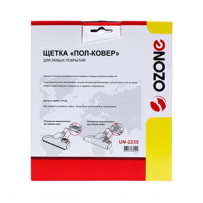 Щетка для пылесоса "Пол-ковер" UN-2235 Ozone - это универсальное решение для уборки любых видов покрытий. Она идеально подходит для чистки ковров, паркета, линолеума и других твердых поверхностей.