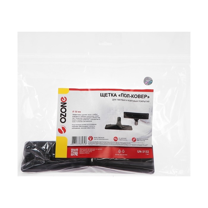Щетка для пылесоса "Пол-ковер" UN-3132 Ozone - это насадка, предназначенная для уборки различных типов покрытий. Она подходит для чистки как твердых полов, так и ковровых покрытий.