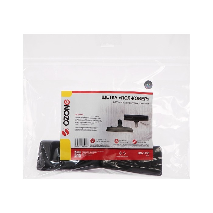 Щетка для пылесоса "Пол-ковер" UN-3135 Ozone - это насадка, предназначенная для уборки различных типов покрытий. Она подходит для чистки как твердых полов, так и ковровых покрытий.