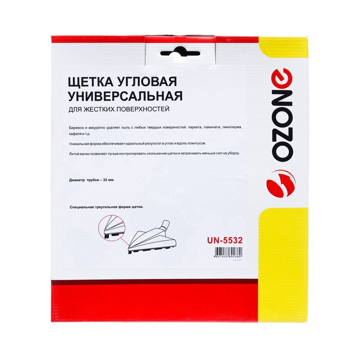 Щетка для пылесоса угловая Ozone для жестких поверхностей - это универсальный аксессуар, который позволяет эффективно очищать различные твердые поверхности, такие как плитка, ламинат, линолеум и другие. Она имеет специальную угловую форму, которая обеспечивает легкую уборку в труднодоступных местах, таких как углы и вдоль плинтусов.