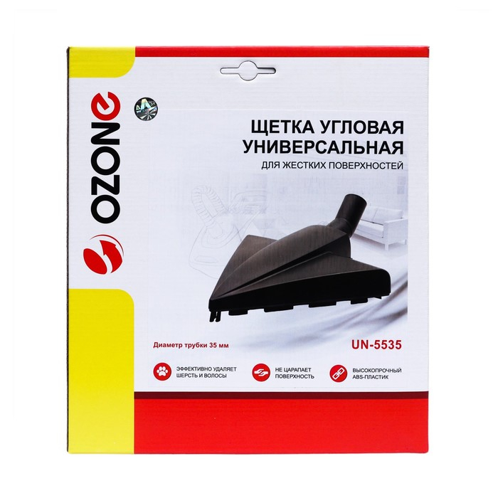 Щетка для пылесоса угловая Ozone для жестких поверхностей - это универсальный аксессуар, который позволяет эффективно очищать различные твердые поверхности, такие как плитка, ламинат, линолеум и другие. Она имеет специальную угловую форму, которая обеспечивает легкую уборку в труднодоступных местах, таких как углы и вдоль плинтусов.