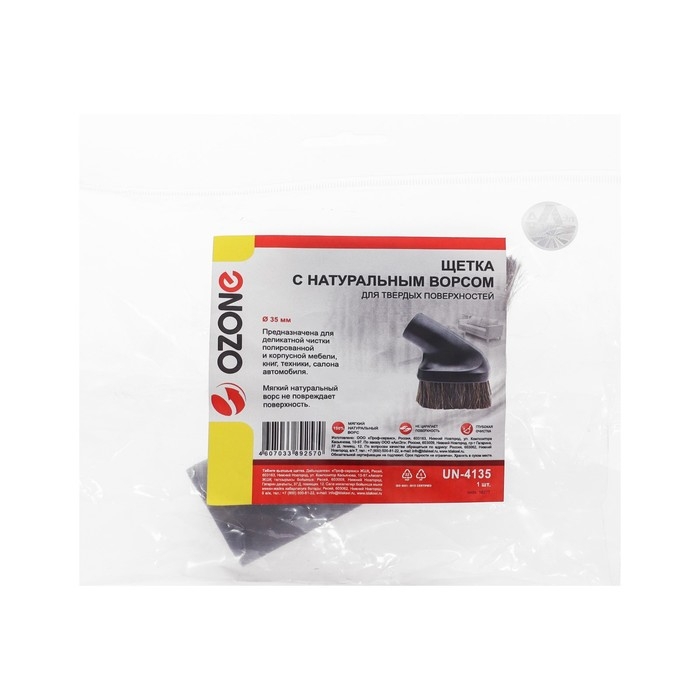 Щетка для пылесоса UN-4135 Ozone - это эффективный инструмент для уборки жестких поверхностей. Она оснащена натуральным ворсом, который обеспечивает тщательную уборку, не повреждая поверхность.