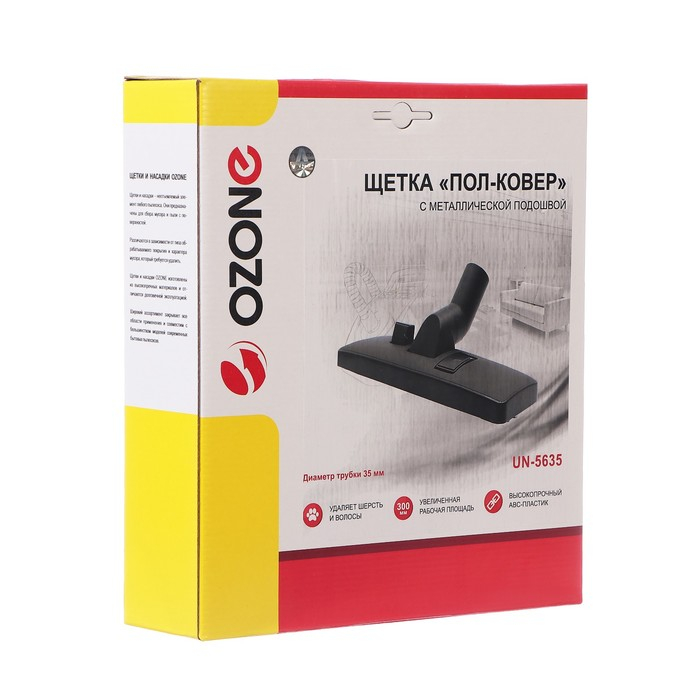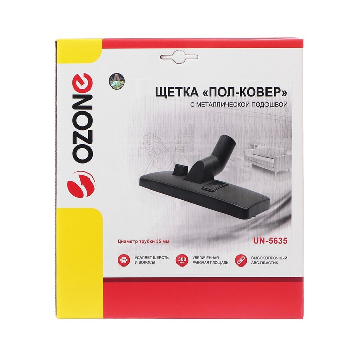 Щетка для пылесоса "Пол-ковер" Ozone с металлической подошвой - это универсальный аксессуар, который позволяет эффективно очищать как твердые, так и ковровые покрытия. Она имеет ширину 300 мм, что обеспечивает большую площадь уборки за один проход.
