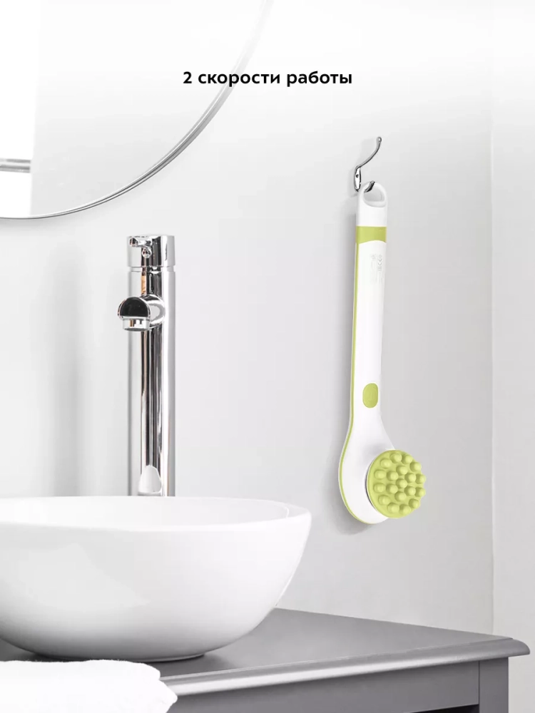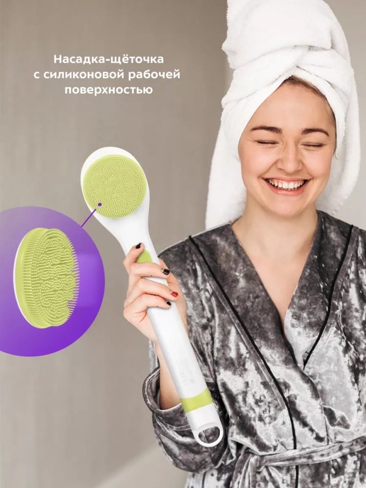 Щетка-массажер для тела аккуратно и тщательно очищает кожу от загрязнений, не растягивая ее, и мягко удаляет омертвевшие клетки верхних слоев кожи. Вибрация при работе прибора стимулирует кровообращение, снимает усталость, оставляя кожу гладкой, упругой и сияющей.