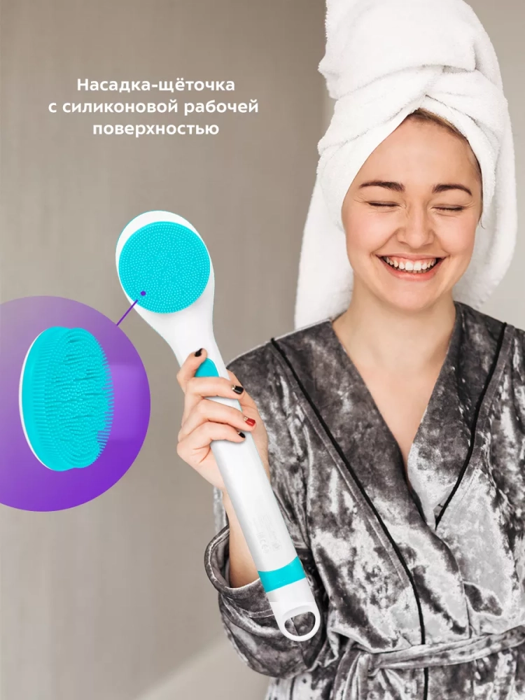 Щетка-массажер для тела аккуратно и тщательно очищает кожу от загрязнений, не растягивая ее, и мягко удаляет омертвевшие клетки верхних слоев кожи. Вибрация при работе прибора стимулирует кровообращение, снимает усталость, оставляя кожу гладкой, упругой и сияющей.
