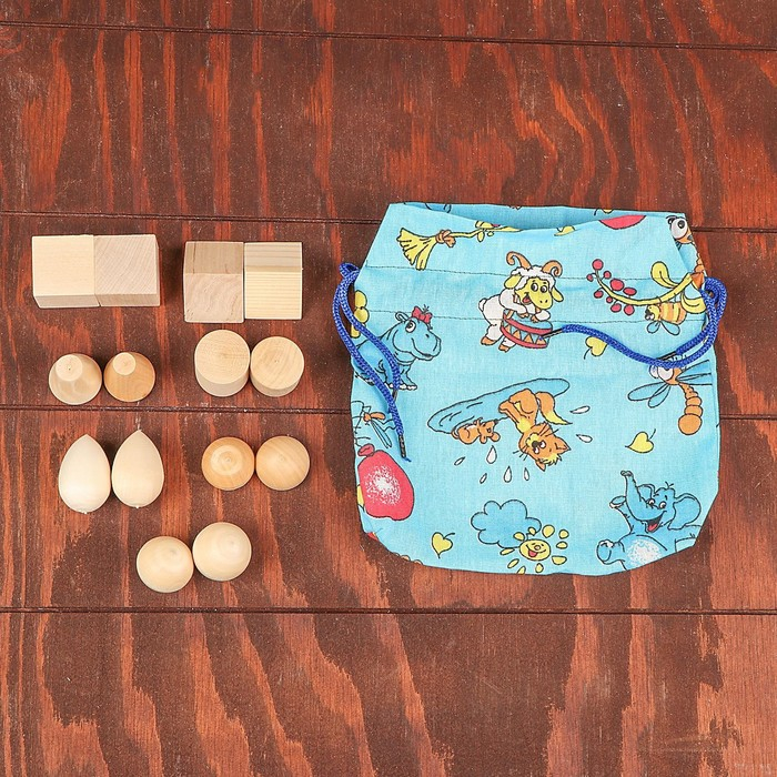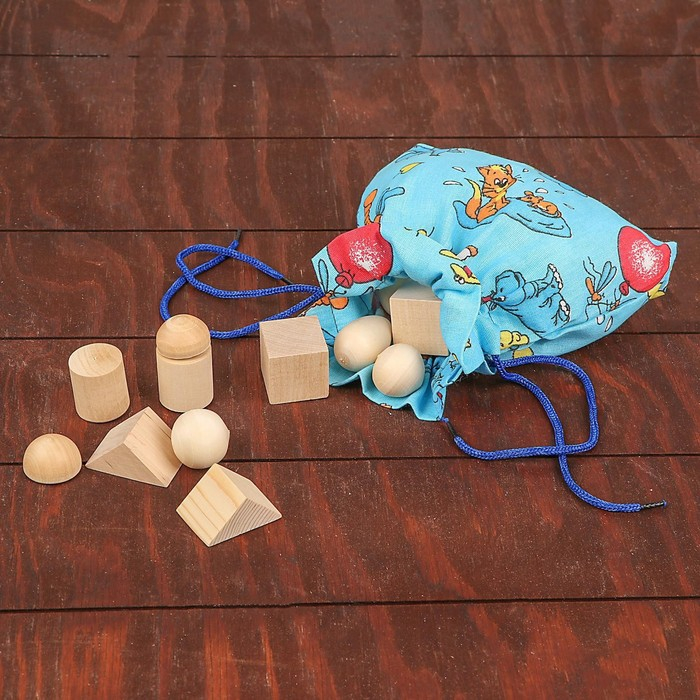 «Волшебный мешочек» познакомит ребёнка со счётом и различными геометрическими фигурами. Малышу будет интересно доставать из мешка по одной фигуре и считать их. Цель ребёнка — сосчитать все фигуры в мешке. Играя с набором, расскажите ребёнку названия всех фигур.