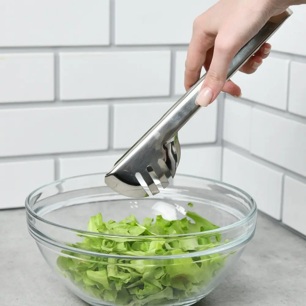 Щипцы применяются во время приготовления, перемешивания салатов, а также для раскладывания в индивидуальные тарелки.