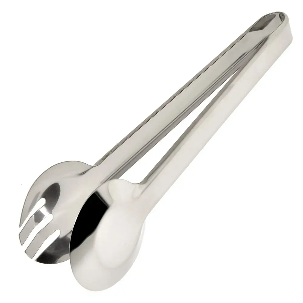 Для приготовления и раскладывания пищи весьма кстати будут универсальные щипцы. Инструмент специально разработан для удобства захвата разной пищи – овощей, мяса, порезанной зелени и т.д. Одна сторона выполнена в виде ложки, другая оснащена прорезями. Приспособление универсально, выполнено из стали с хромированным покрытием, следовательно, может использоваться с горячей и холодной пищей. Длина 23,5 см. После применения рекомендуется мыть мягкой щеткой с использованием жидких моющих средств.