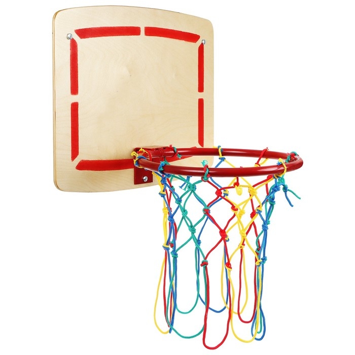 Устанавливается на крючках на перекладину спортивного комплекса. Размер щита — 38 х 50 см. Внутренний диаметр кольца — 28 см.