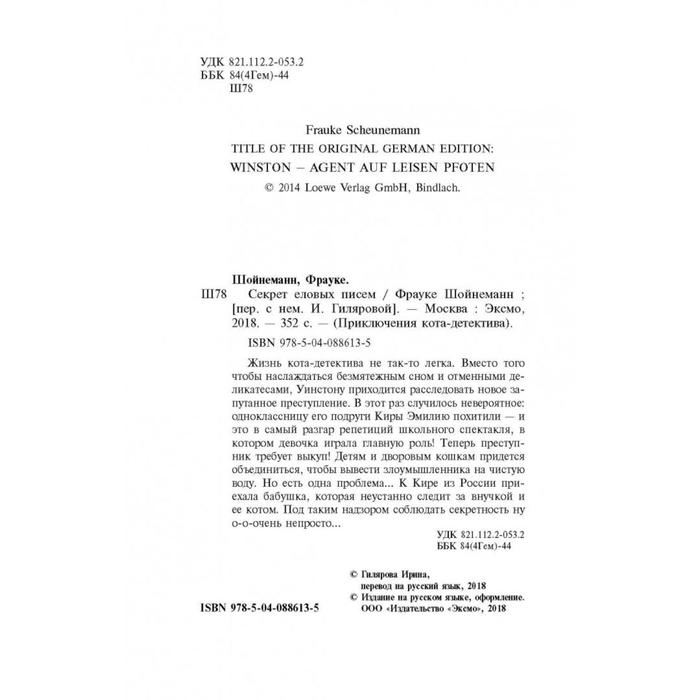 Жизнь кота-детектива не так-то легка. Вместо того чтобы наслаждаться безмятежным сном и отменными деликатесами, Уинстону приходится расследовать новое запутанное преступление. В этот раз случилось невероятное: одноклассницу его подруги Киры Эмилию похитили - и это в самый разгар репетиций школьного спектакля, в котором девочка играла главную роль! Теперь преступник требует выкуп! Детям и дворовым кошкам придется объединиться, чтобы вывести злоумышленника на чистую воду. Но есть одна проблема… К Кире из России приехала бабушка, которая неустанно следит за внучкой и ее котом. Под таким надзором соблюдать секретность ну о-о-очень непросто…