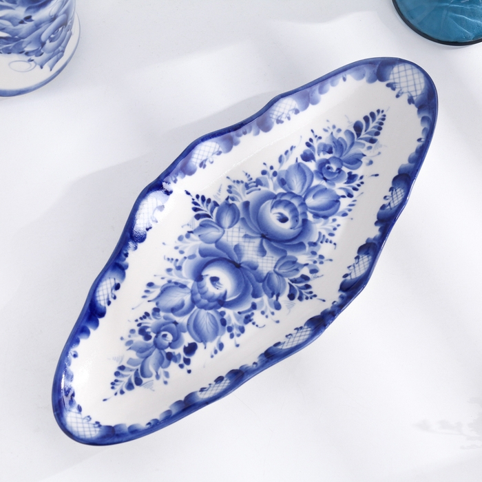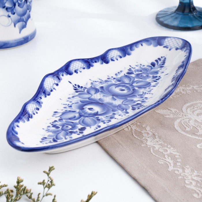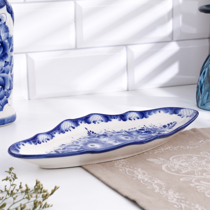 Селёдочница "Цветы", 33 х 14 см, гжель