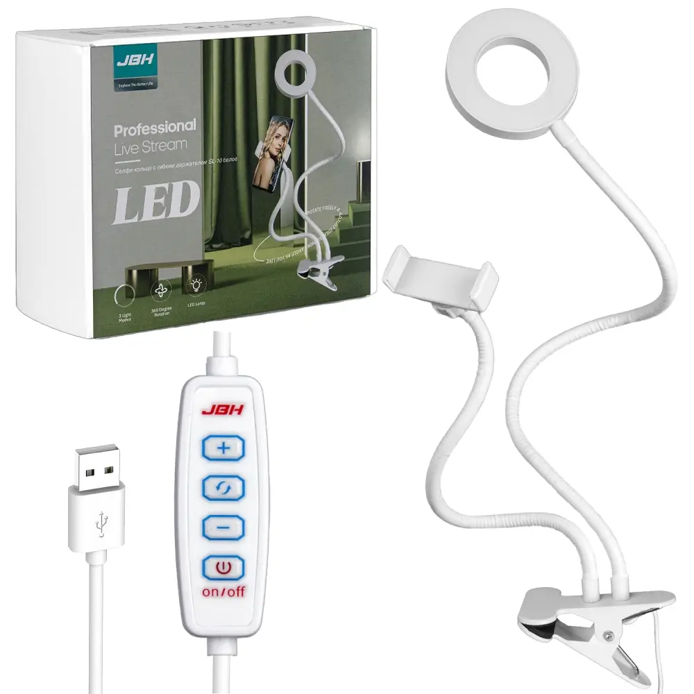 Селфи кольцо с гибким держателем 8,5" SL-10 белое JBH (30шт/кор)