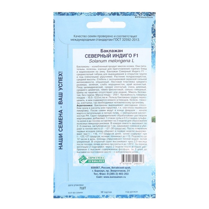 Семена Баклажан "Алёшка", F1, скороспелый, 0,05 г