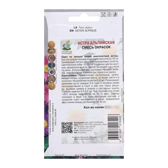 Семена цветов Астра альпийская, Смесь окрасок, 0,3гр.