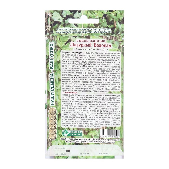 Семена Цветов Азарина лазающая Лазурный Водопад, 5 шт
