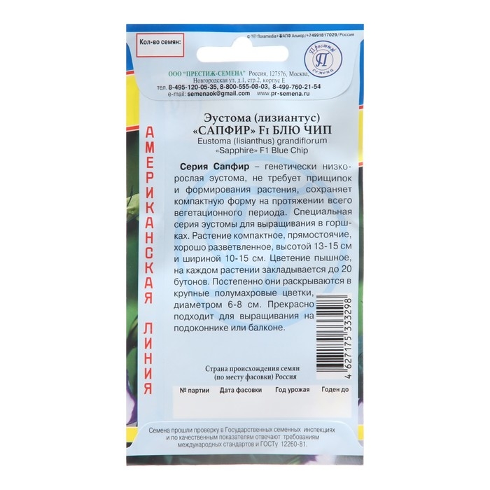 Набор Семена цветов эустомы махровой лизиантус