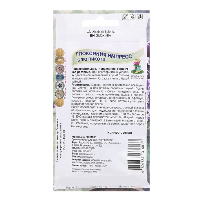 Семена цветов Глоксиния "Императрица", 4 шт.