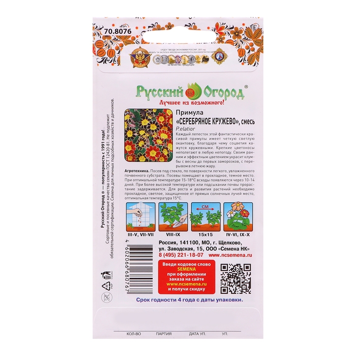 Семена цветов Примула "Серебряное кружево", смесь, 5 шт