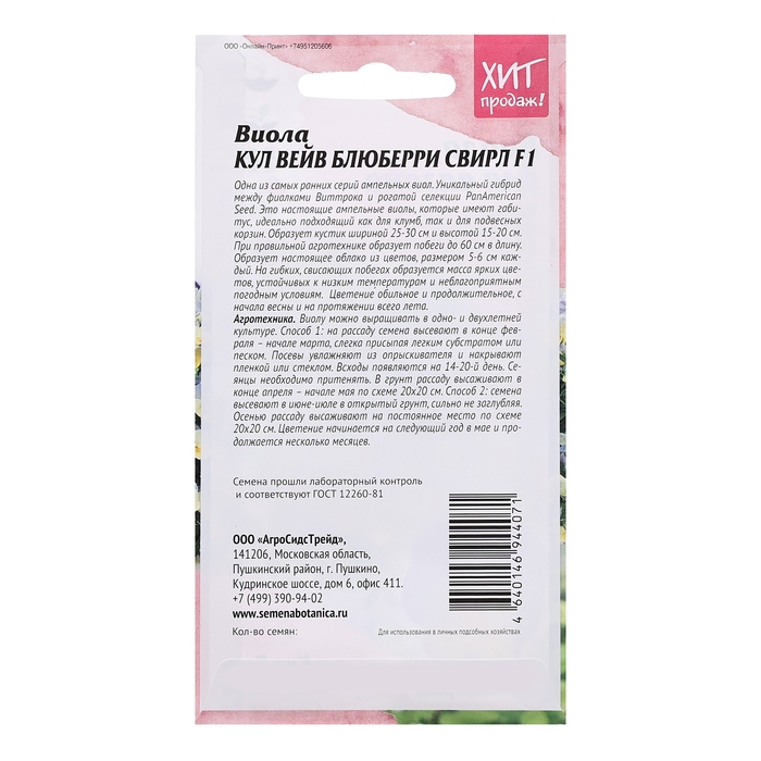 Одна из самых ранних серий ампельных виол. Уникальный гибрид между фиалками виттрока и рогатой селекции PanAmerican Seed. Это настоящие ампельныевиолы, которые имеют габитус, идеальный подходящий как для клумб, так и для подвесных корзин. Образует кустик шириной 25-30 см и высотой 15-20 см. При правильной агротехнике образует побеги до 60 сантиметров в длину. Образует настоящее облако из цветов, размер 5-6 см каждый. На гибких свисающих побегах образуется масса ярких цветов, устойчивых к низким температурам и неблагоприятным погодным условиям. Цветение обильное и продолжительное, с начала весны и на протяжении всего лета. Агротехника: Виолу можно выращивать в одно- и двухлетней культуре. 1 способ: на рассаду семена высевают в конце февраля – начале марта, слегка присыпая легким субстратом или песком. Посевы увлажняют из опрыскивателя и накрывают пленкой или стеклом. Всходы появляются на 14-20 день. Сеянцы необходимо притенять. В грунт рассаду высаживают в конце апреля – начале мая по схеме 20х20 см. 2 способ: семена высевают в июне-июле в открытый грунт, сильно не заглубляя. Осенью рассаду высаживают на постоянное место по схеме 20х20 см. Цветение начинается на следующий год в мае и продолжается несколько месяцев.