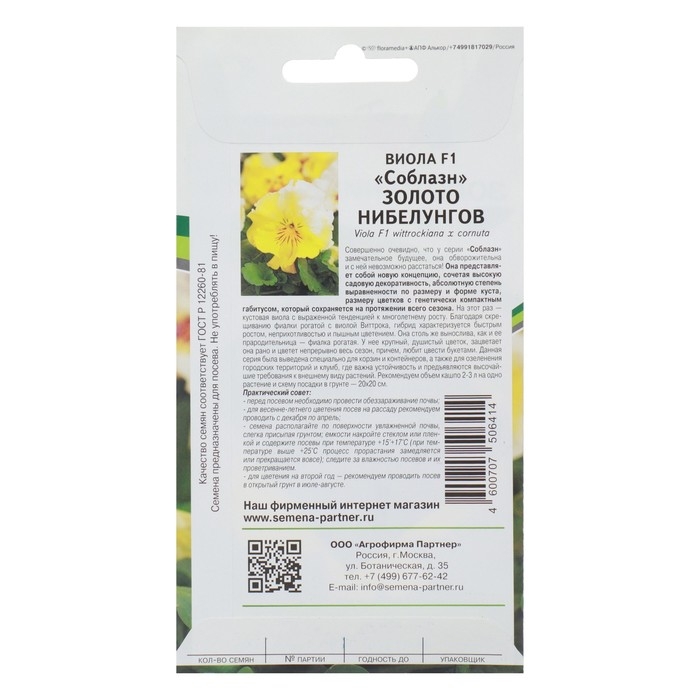 Семена цветов Виола "Соблазн Золото Нибелунгов F1", 10 шт