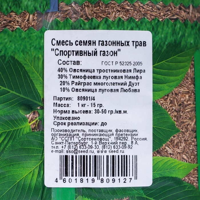 Семена газонной травы "Зеленый уголок","Спортивный", 1 кг