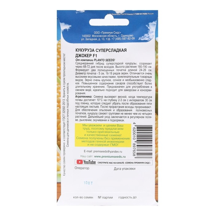 Семена Кукуруза суперсладкая "Джокер F1 (PLANTO SEEDS)", 10 шт.