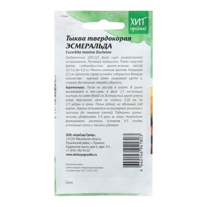 Семена Тыква "Эсмеральда" твердокорая, ц/п, 2 г