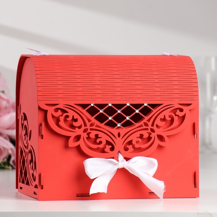 Семейный банк "Ажурный", со стразами, красно-белый, 23,5х17х20 см