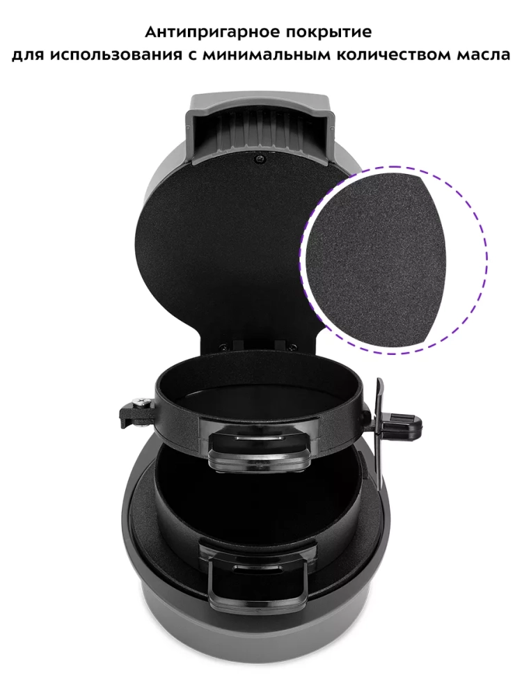 На нагревательные панели и форму для сэндвича нанесено антипригарное покрытие, что позволяет готовить с минимальным количеством масла. Такое покрытие также облегчает процесс чистки устройства.