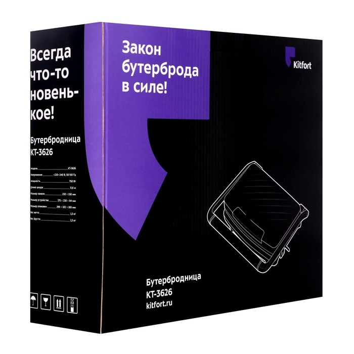 Сэндвичница Kitfort KT-3626, 750 Вт, антипригарное покрытие, зелёная
