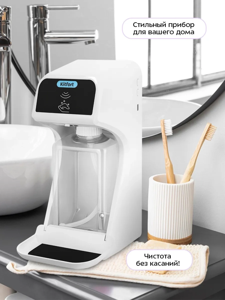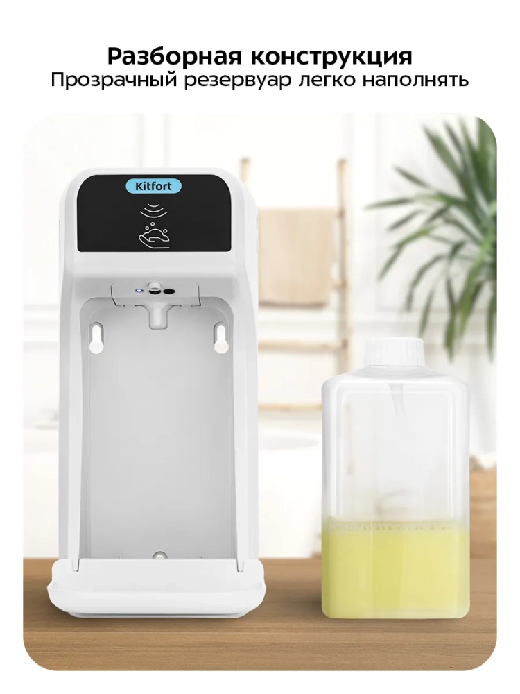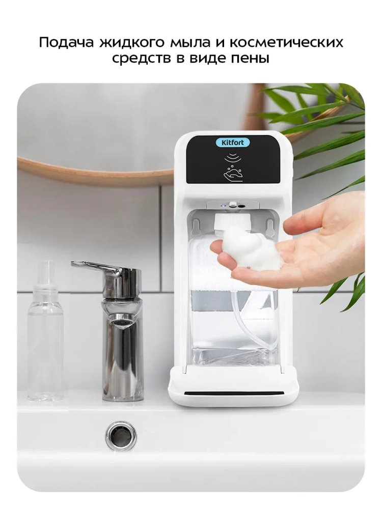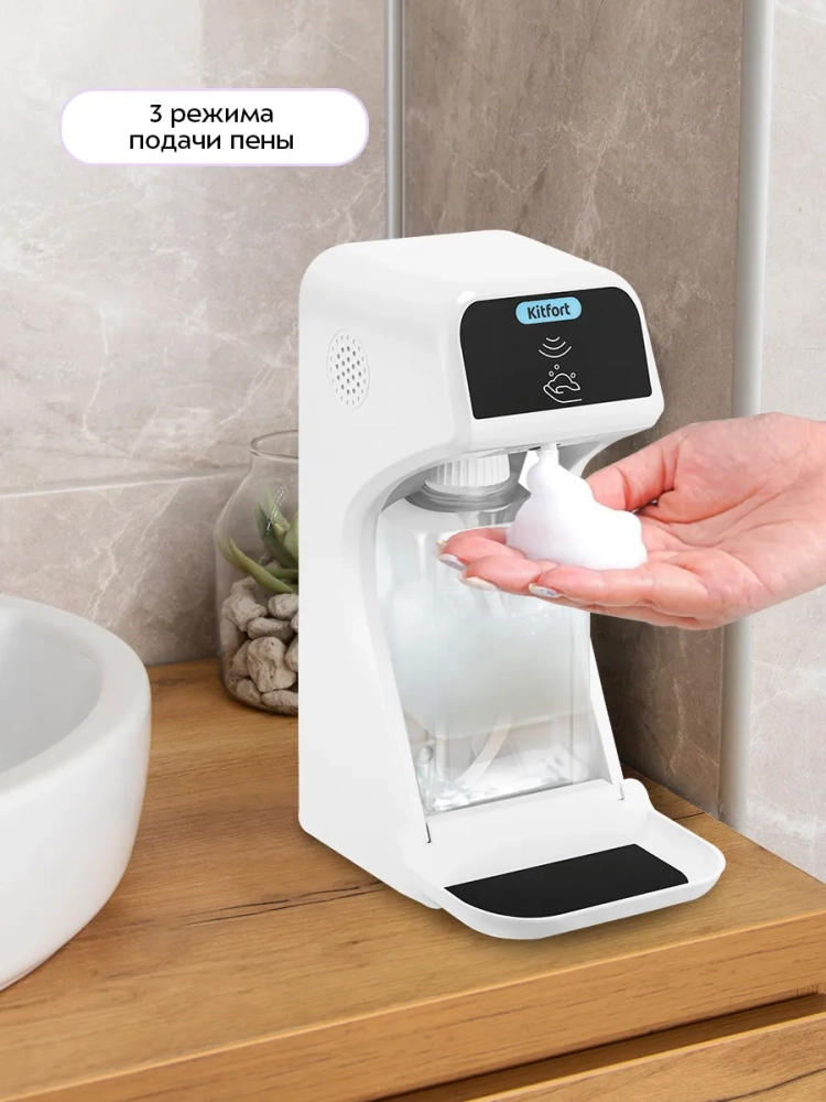 Сенсорный диспенсер для мыла-пены Kitfort КТ-6513 — устройство для порционной выдачи жидкого мыла, жидких моющих и косметических средств в виде пены.