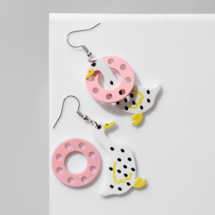 Серьги акрил «Гуси» в спасательных кругах, цветные в серебре