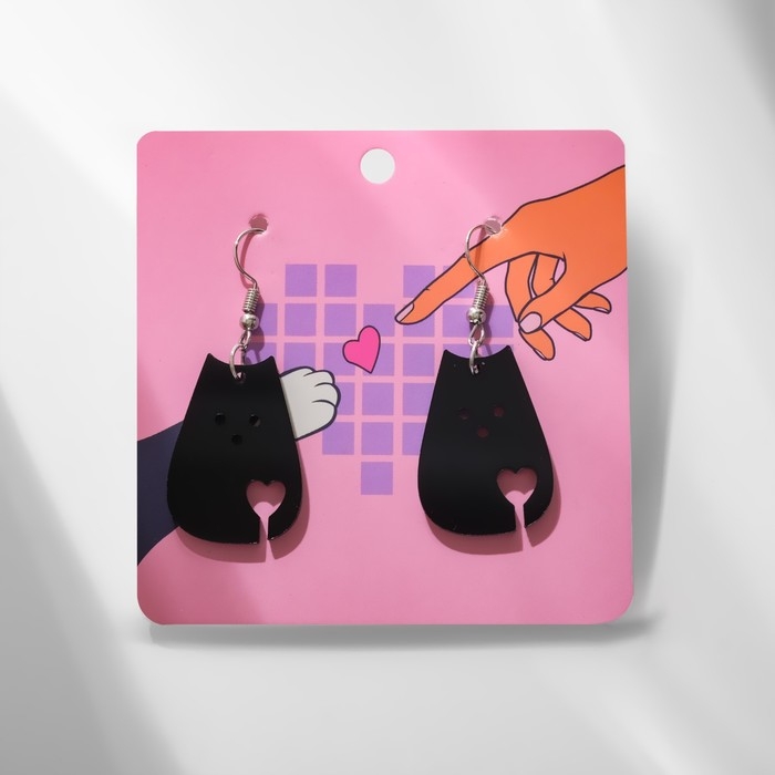 Серьги акрил «Котик» с сердечком, цвет чёрный в серебре