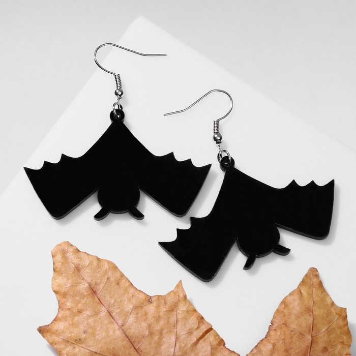 Серьги акрил «Летучие мыши» большие, цвет чёрный в серебре