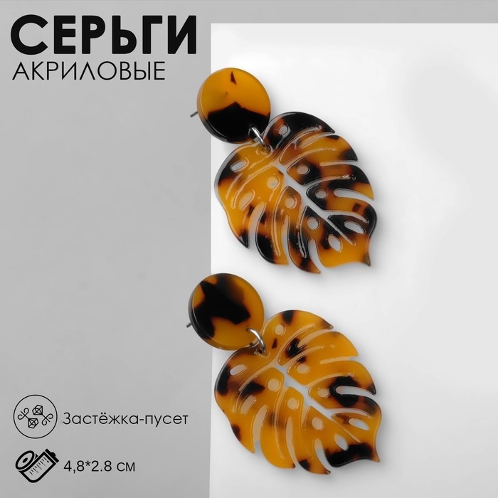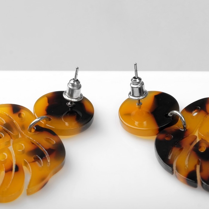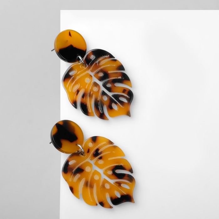 Серьги акрил «Листья» пятнистые, цвет чёрно-жёлтый