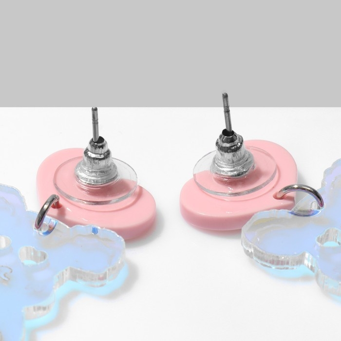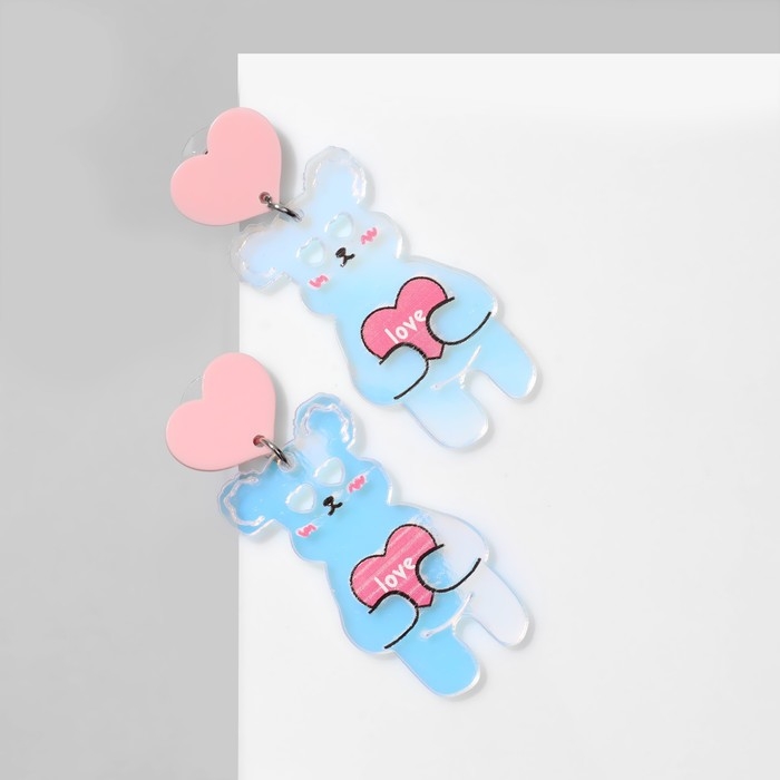 Серьги акрил «Мишки» с сердцем, цветные в серебре